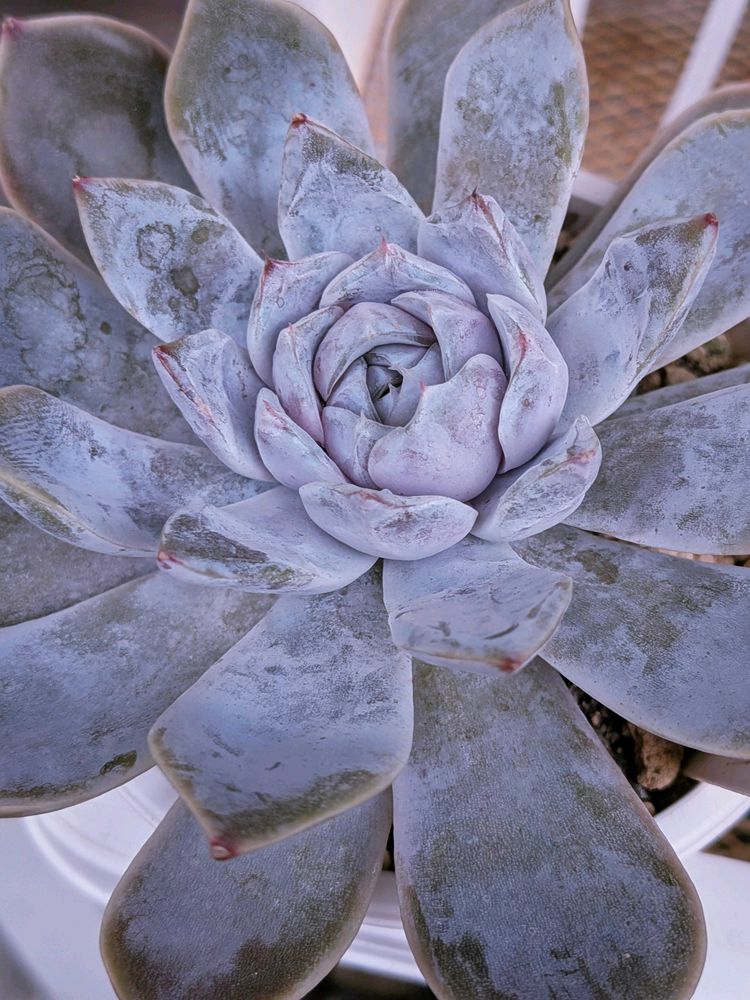 今朝庭🏡多肉ちゃんのスノーバニー🥰白くなってきた。白いお粉の薄化粧✨