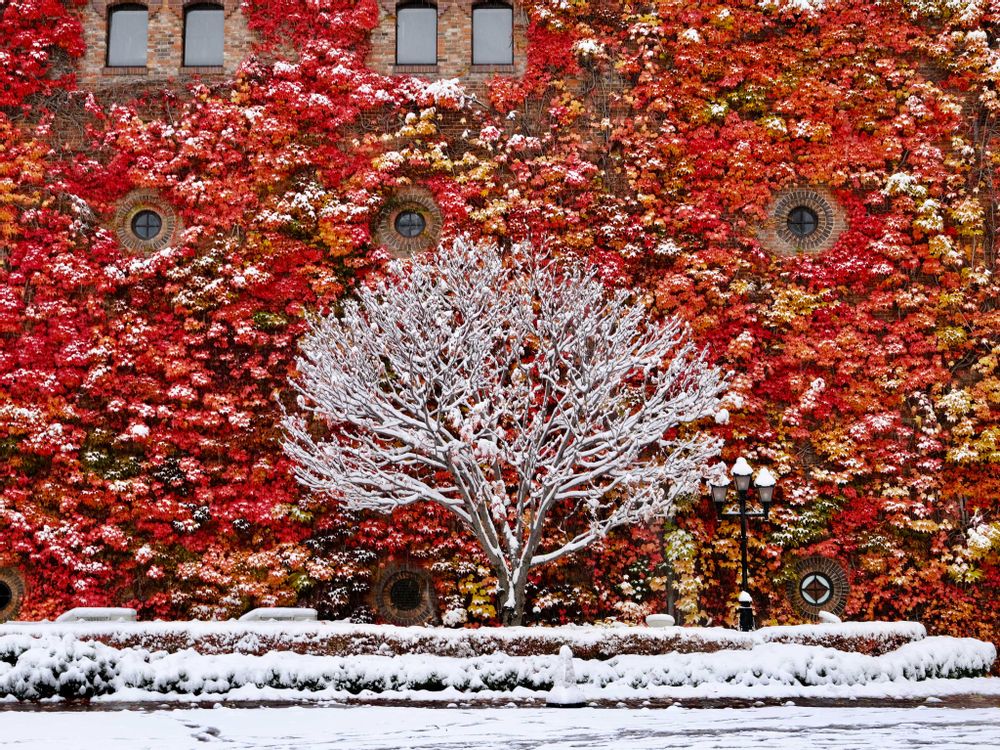これから蔦の壁もどんどん色を失っていきます。