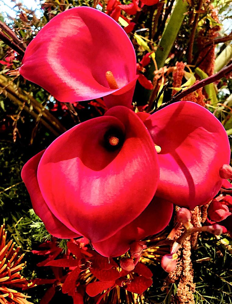 水を多く必要とする湿地性のオランダカイウが一般的なカラーの原種ですが、この"レッドチャーム"は、水捌けの良い土地を好む畑地性の品種に分類されるため、栽培には高温多湿を避けた徹底管理が必要のようです💐
