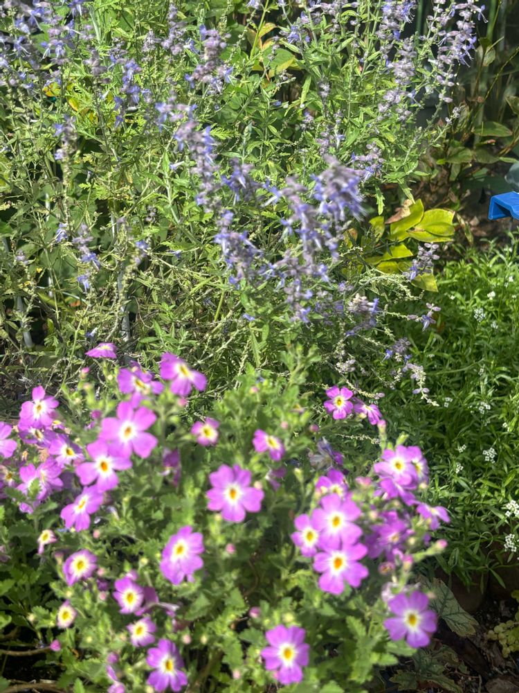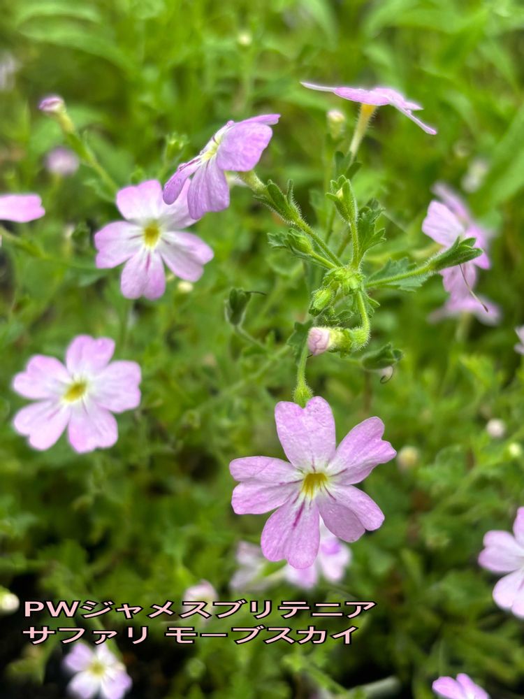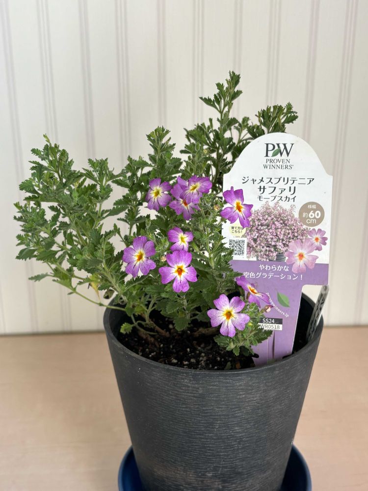 大きなプランターで両脇に枝分かれして花がたくさん咲いていたジャメスブリテニア。