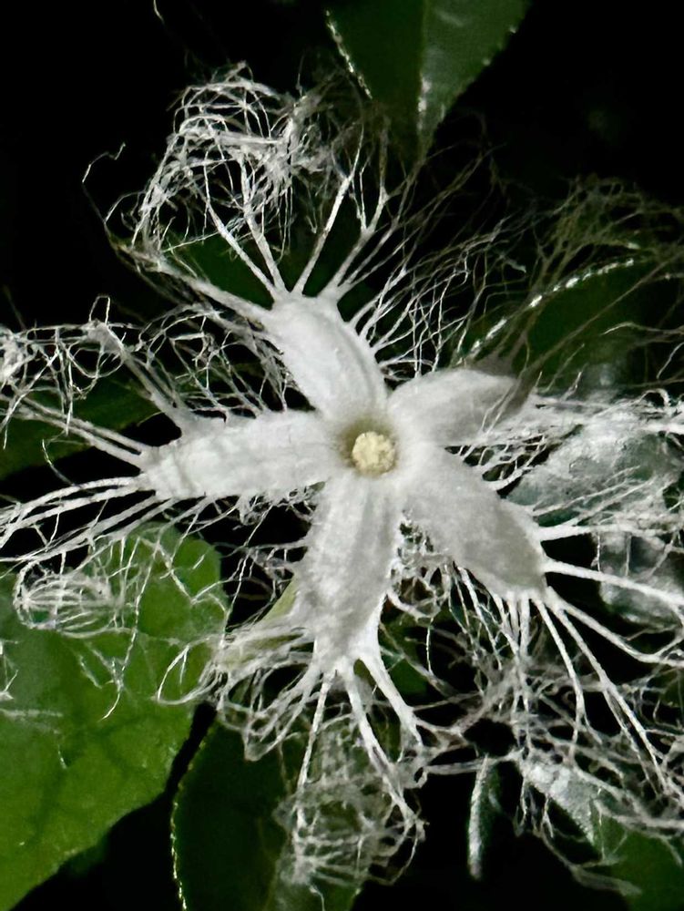 純白の花びらは5枚の星型で、その花びらの縁は細いレース状になって幻想的な姿を見せてくれます