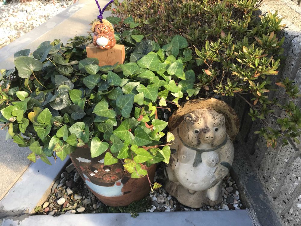 信楽焼の狸、我が家も玄関前にいます。