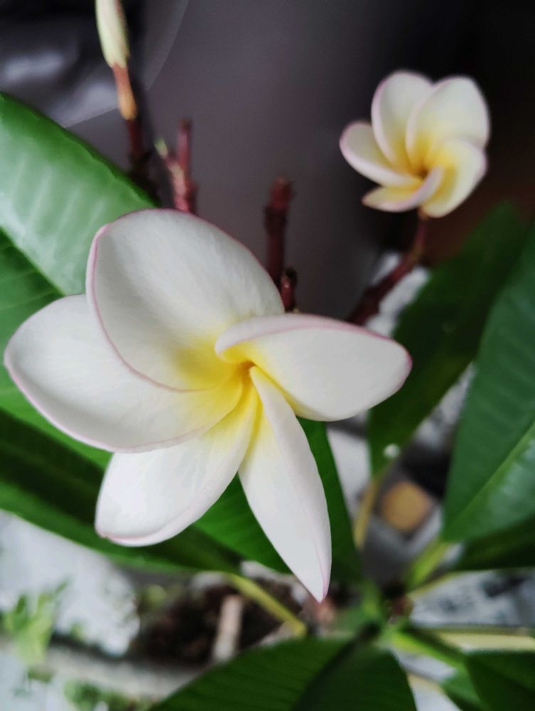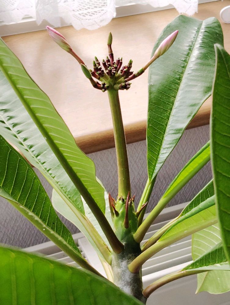 ただプルメリア、今年は1日夜8時頃まで風除室に置き忘れ、寒かったので、いっぺんに花や花茎が傷んでしまったの。❄️