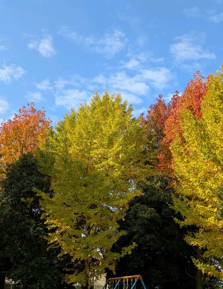 近所の小さな公園のイチョウとモミジバフウが綺麗でした🍁💛🍂