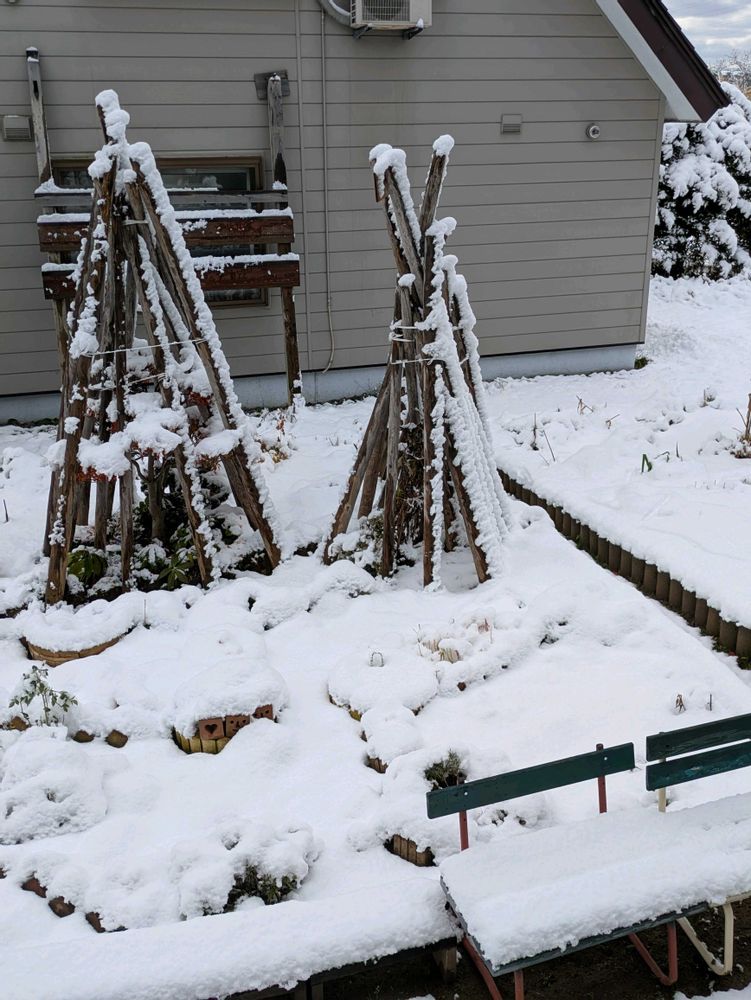 雪の重みから枝を守ってくれるので、ガッチリと囲います。