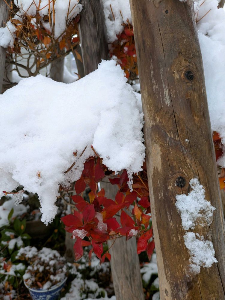 白い雪に赤い葉っぱ、とってもきれいですね💕︎