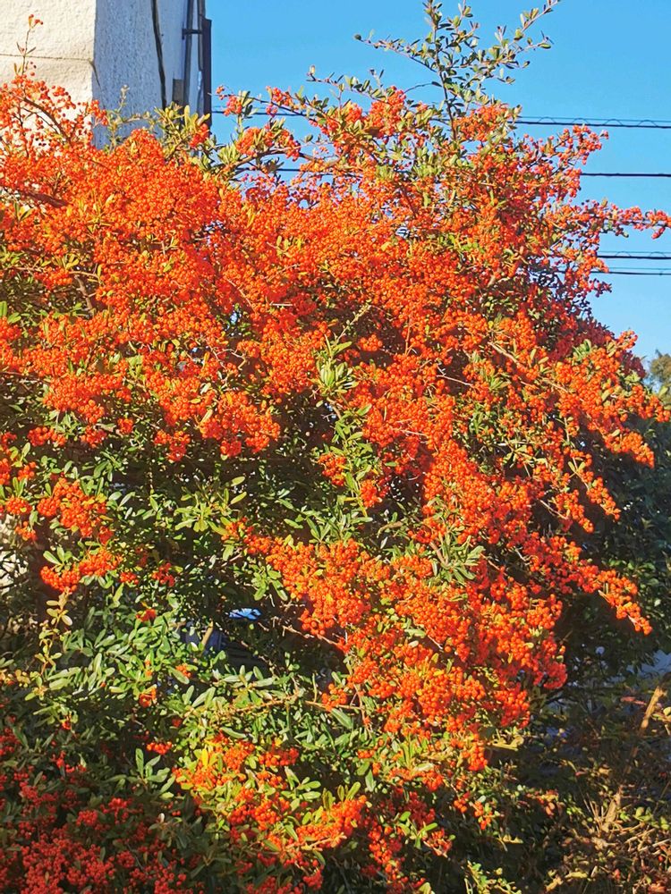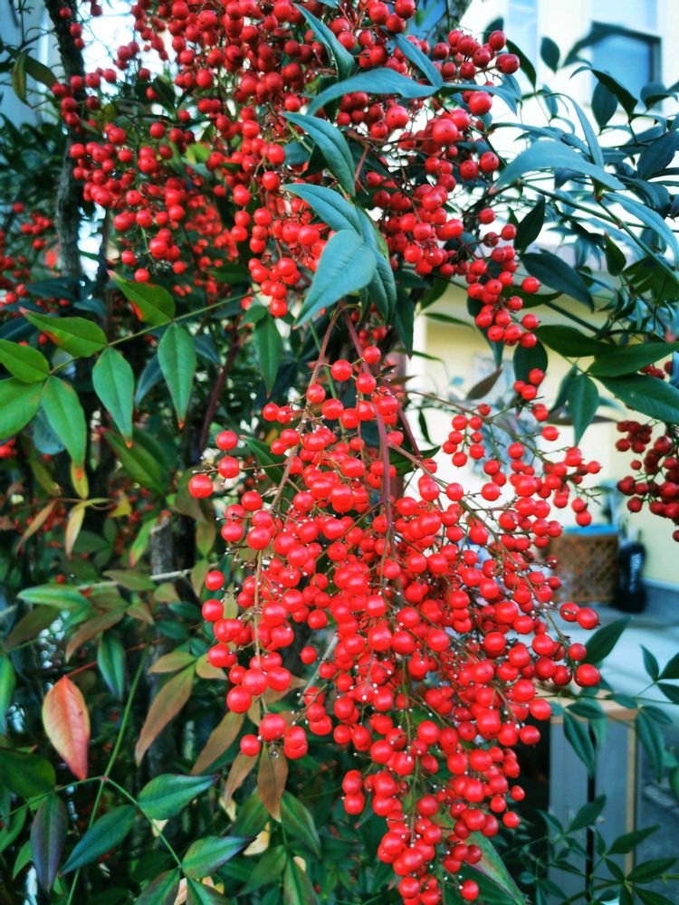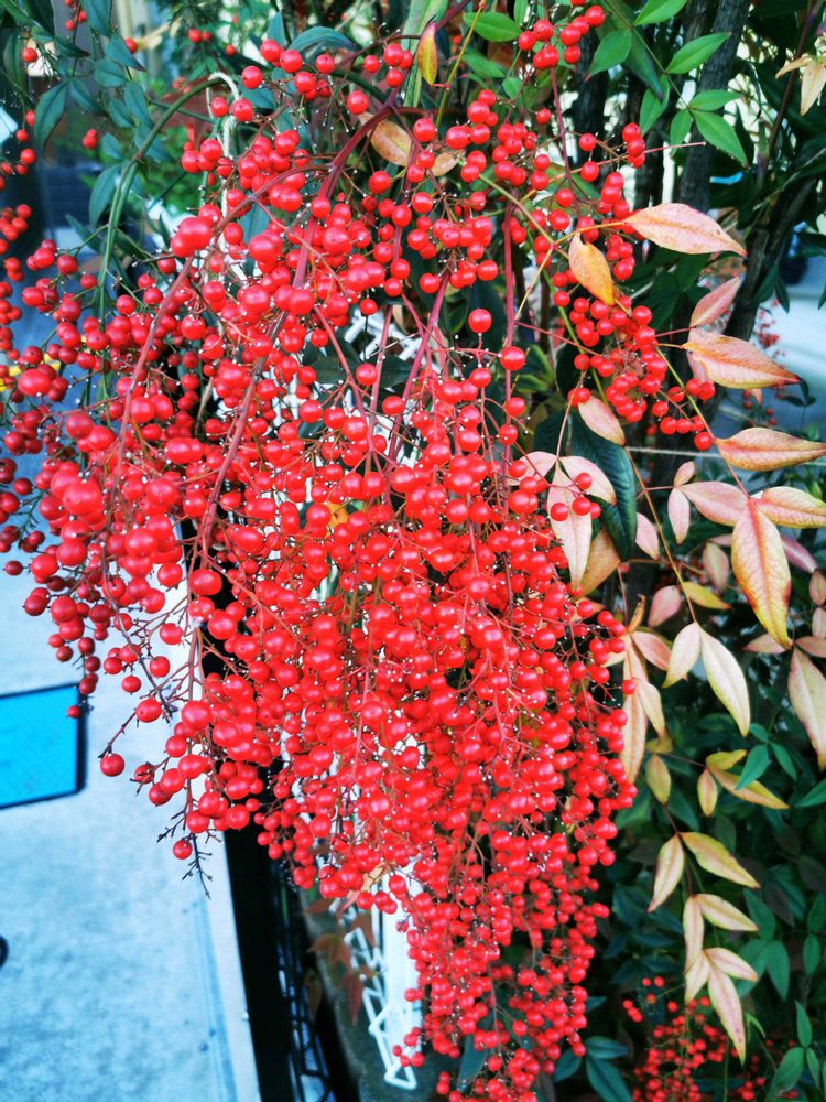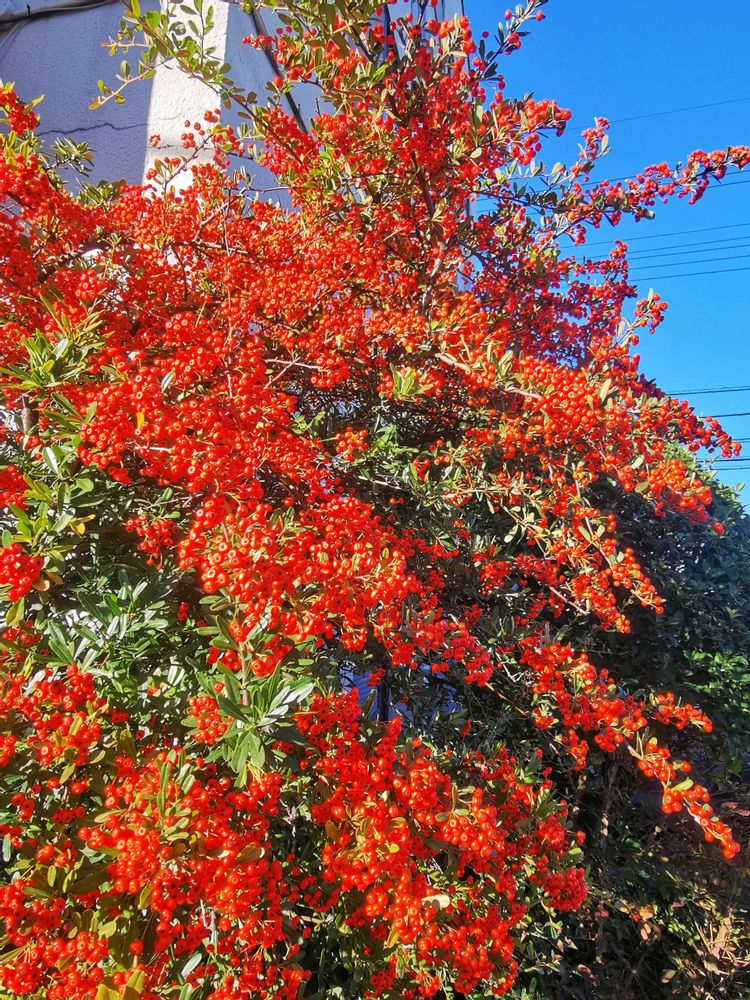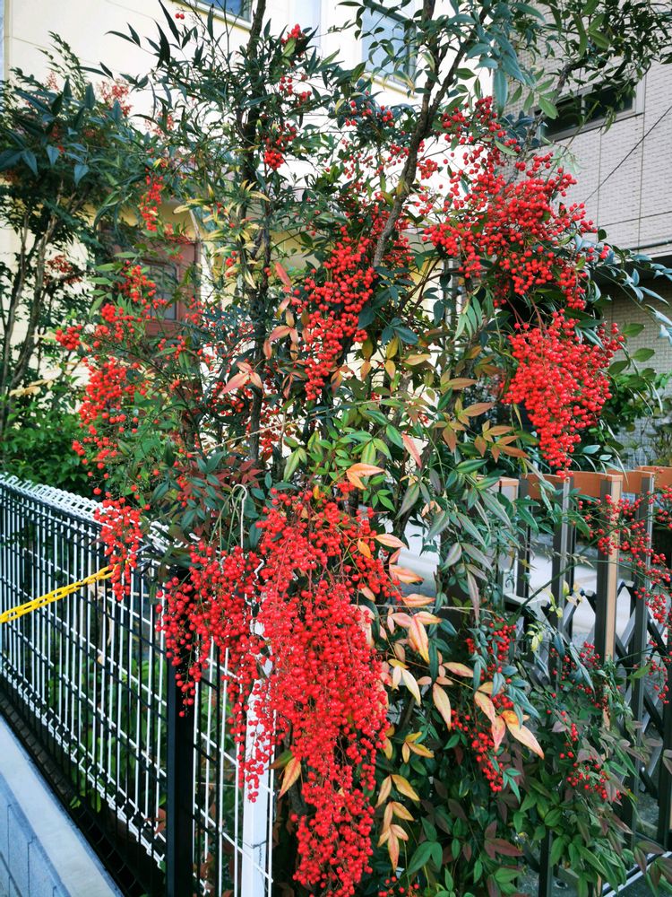 通りのピラカンサやナンテンが、鮮やかでした。💘