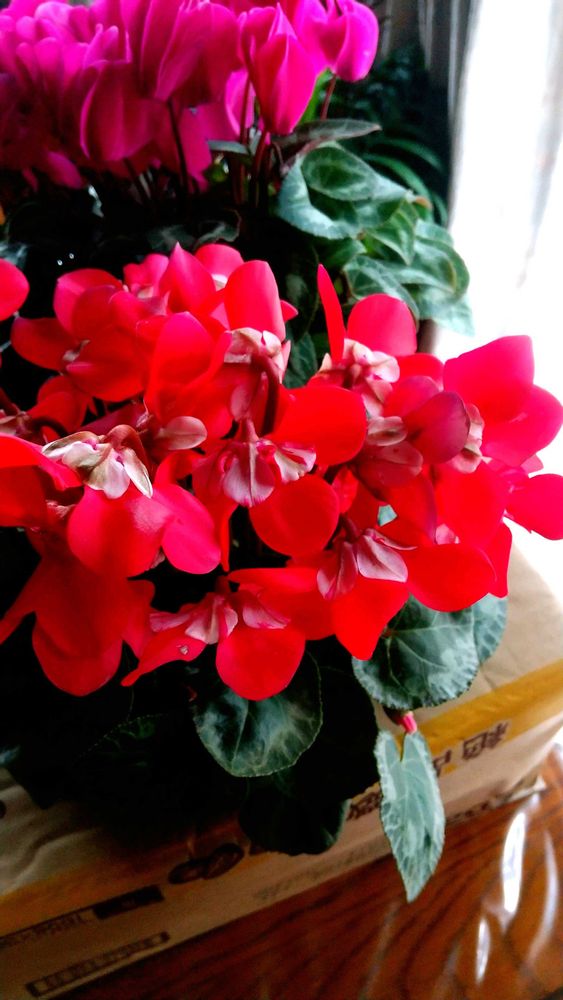 顎の色と花色の対比が美しい、シクラメン ジックスを求めました🎶
