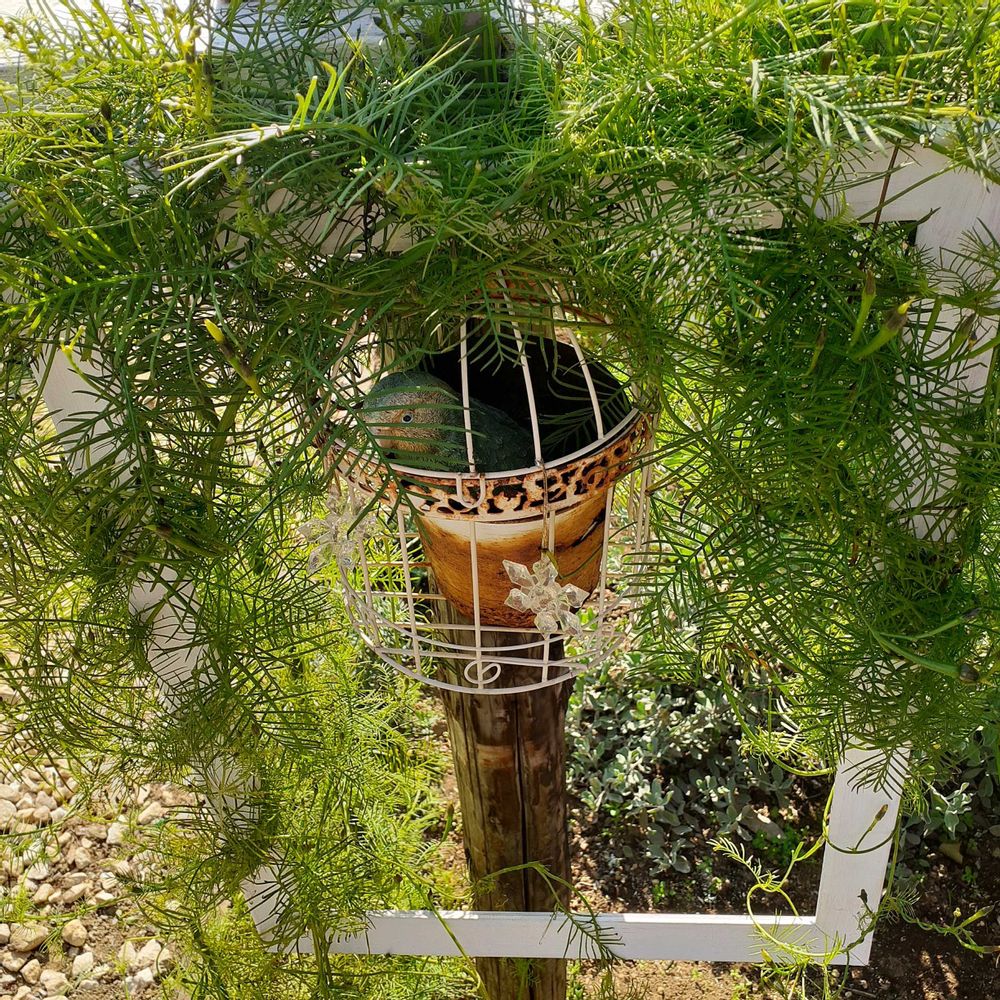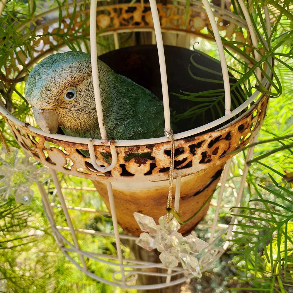 ④額縁の中に鳥かごがあり、コザクラインコのももちゃんがいます🎵