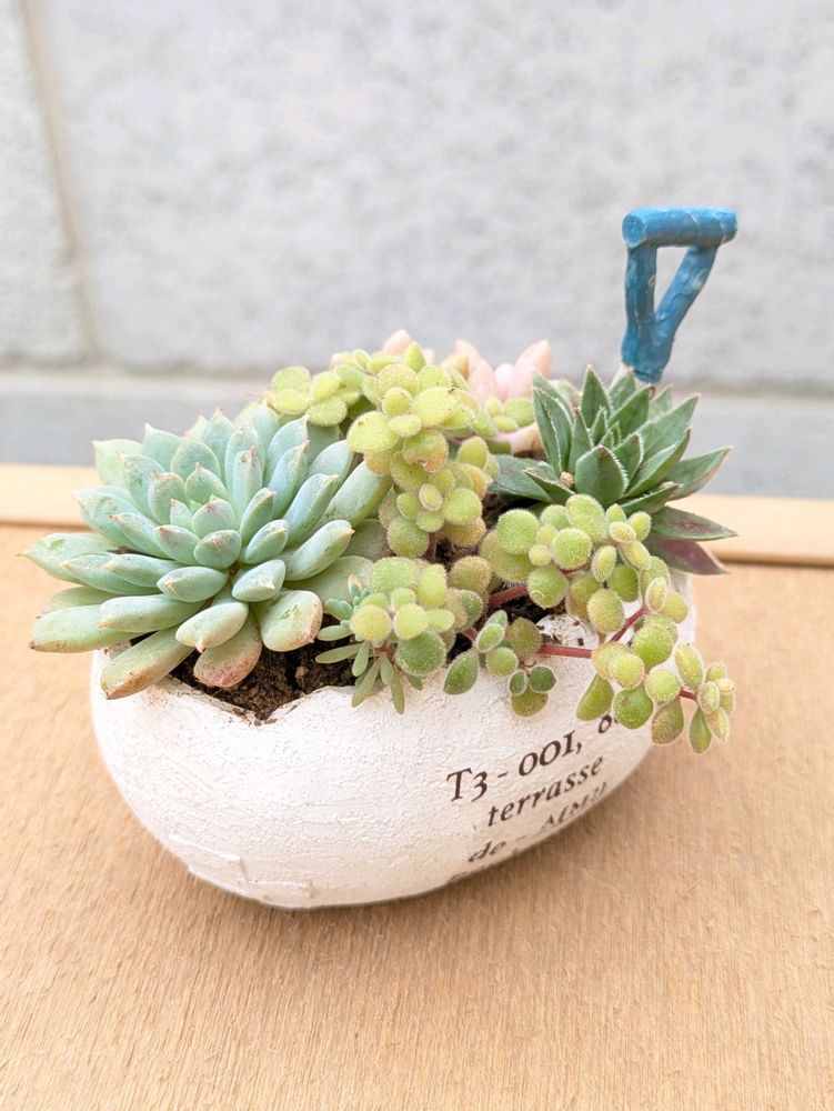 たまごの鉢の寄せ植えが崩壊してきたので、また植えなおしました🐣