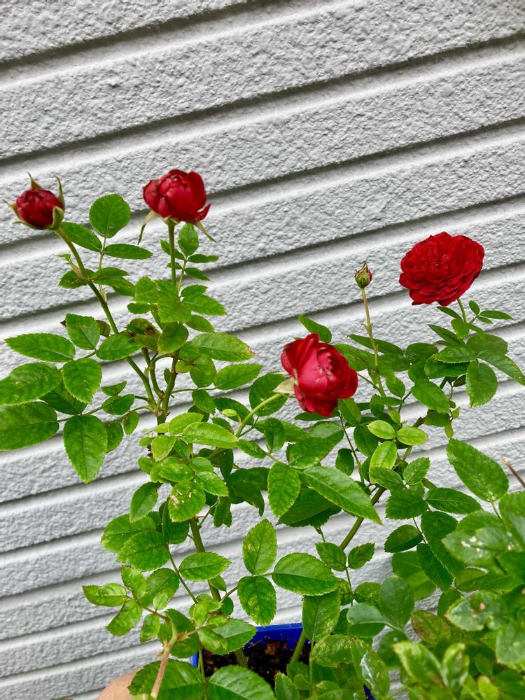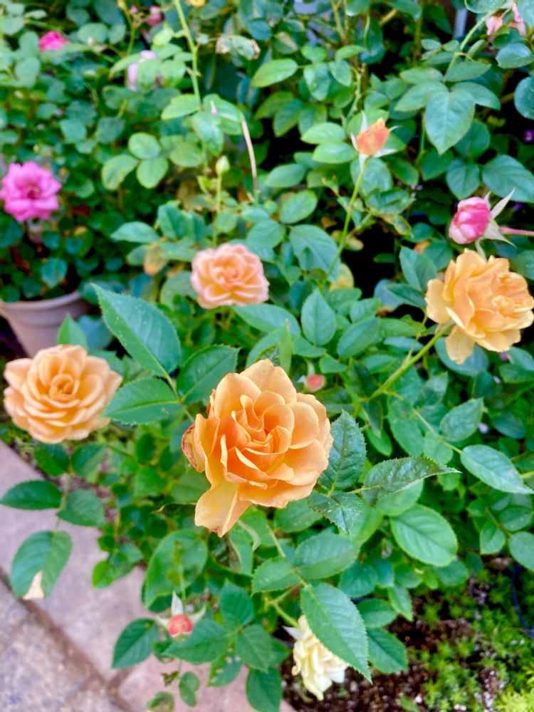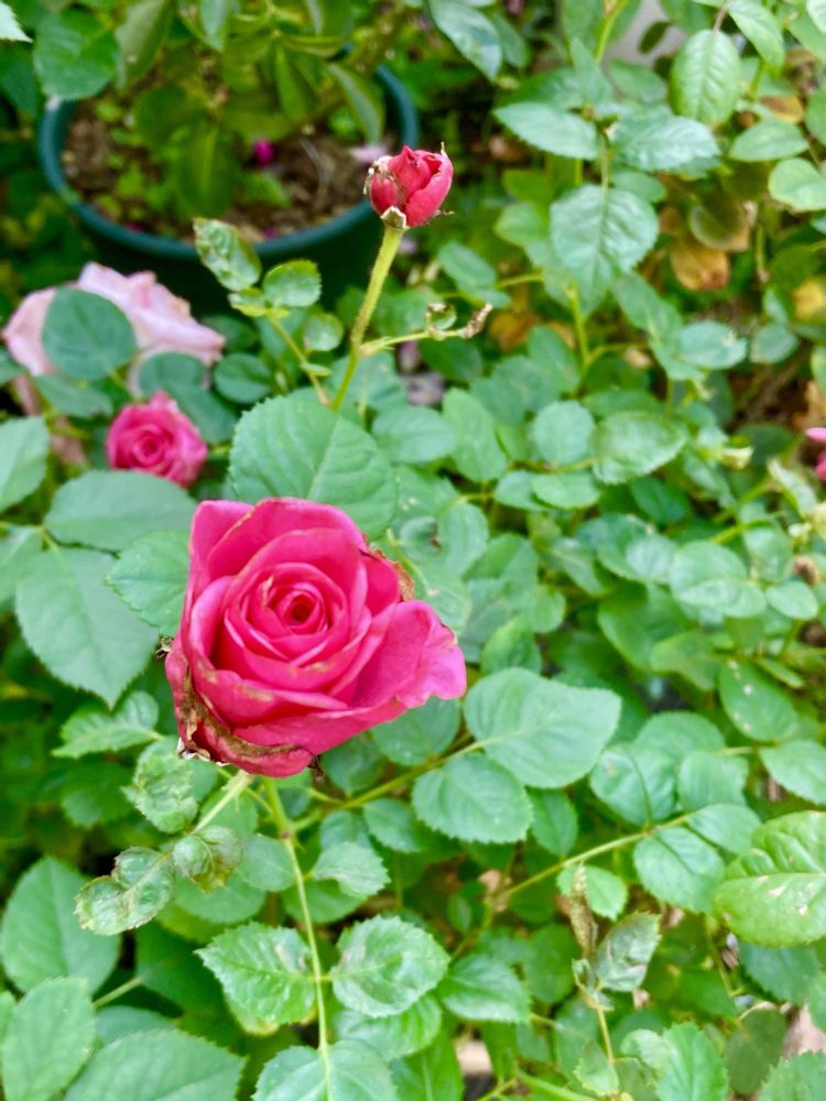 秋はタイミングが揃わずパラパラと咲いている、晩秋に購入した救済バラ達はイモ虫の食害で上手く咲いて無い😢