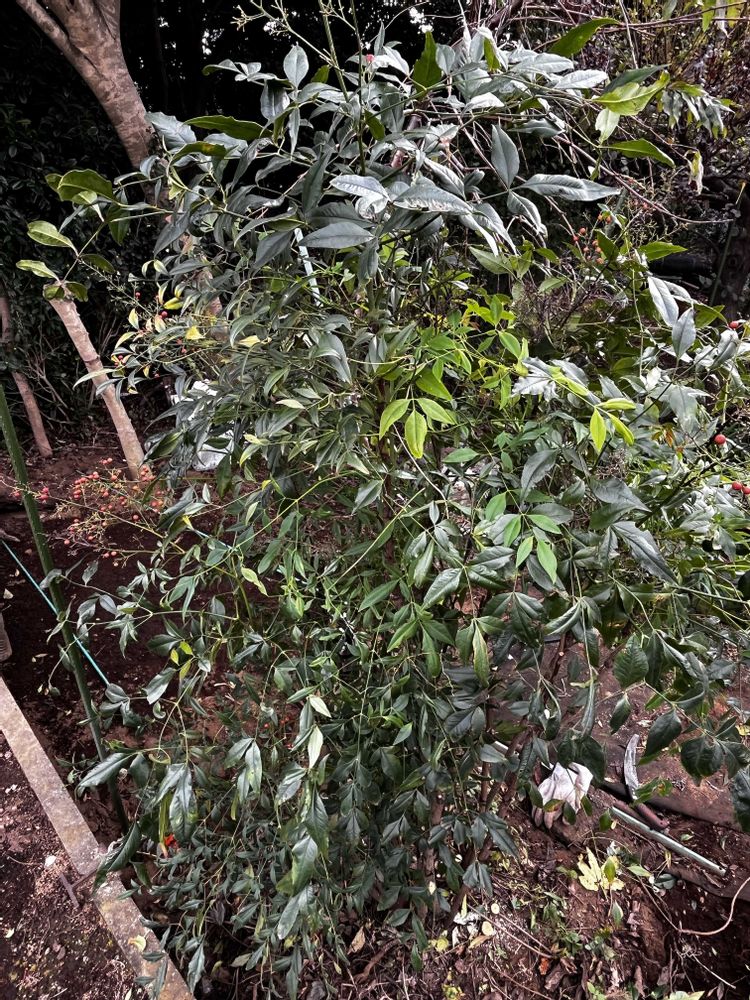 ナンテンの幹は繊維が硬く、太くなった物は超絶に硬く、相当な握力が無いと鋏では切れません。