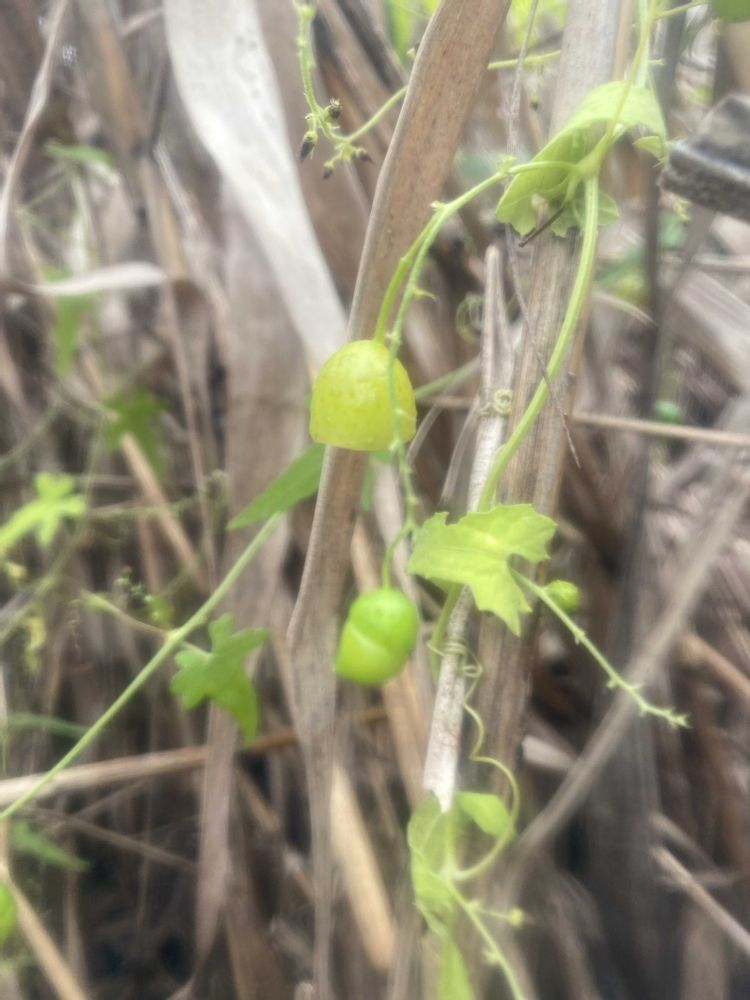 刈っているとヨシに絡みついているウリが…?これはなんでしょう?