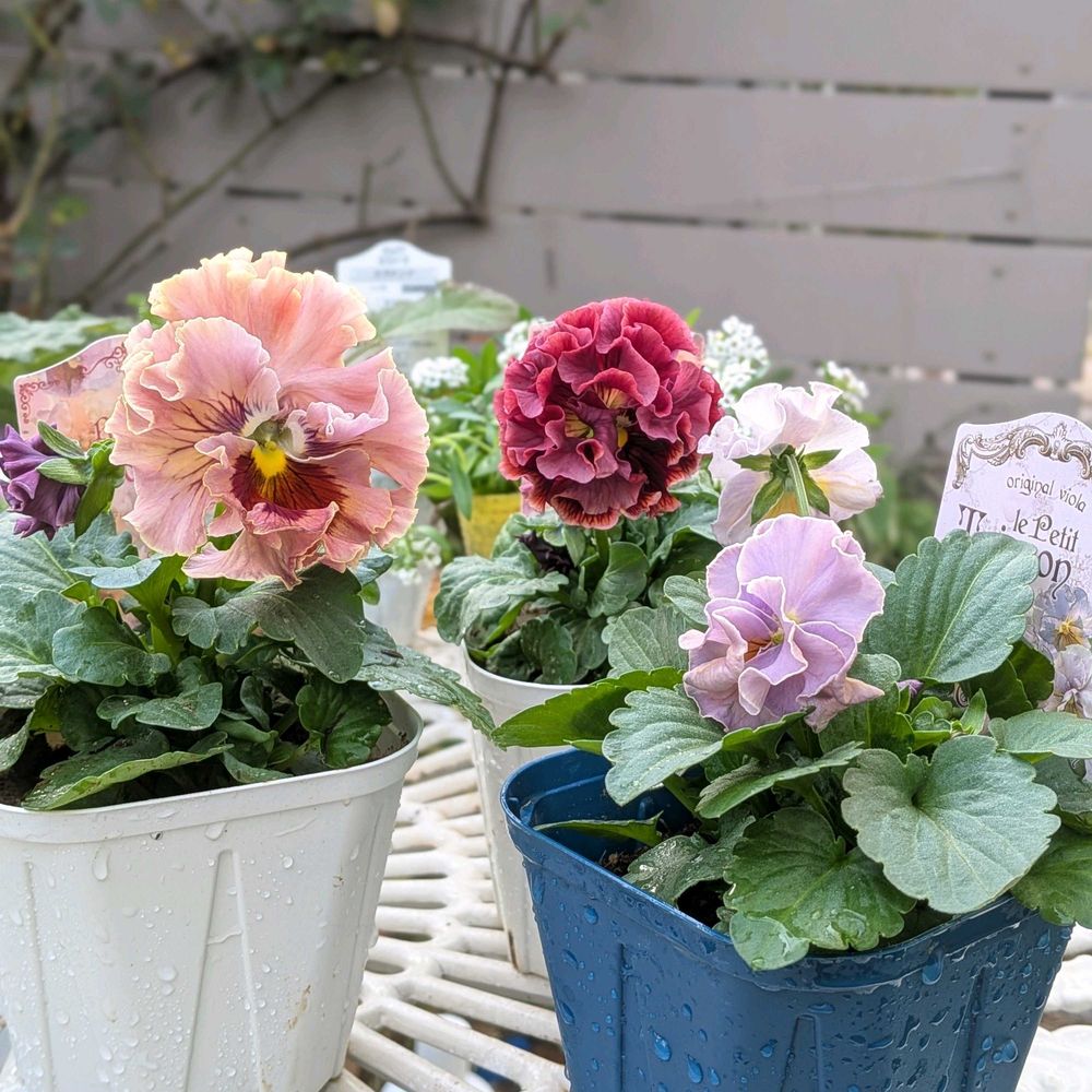 今月は晴れた休日は庭の片付けで忙しいですが、近くの園芸店にサトウ園芸さんのパンジーが入荷したので、買ってきちゃいました。