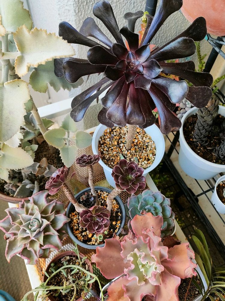 久々に様子を見たら冬型多肉アエオニウムたちが成長し始めていました。