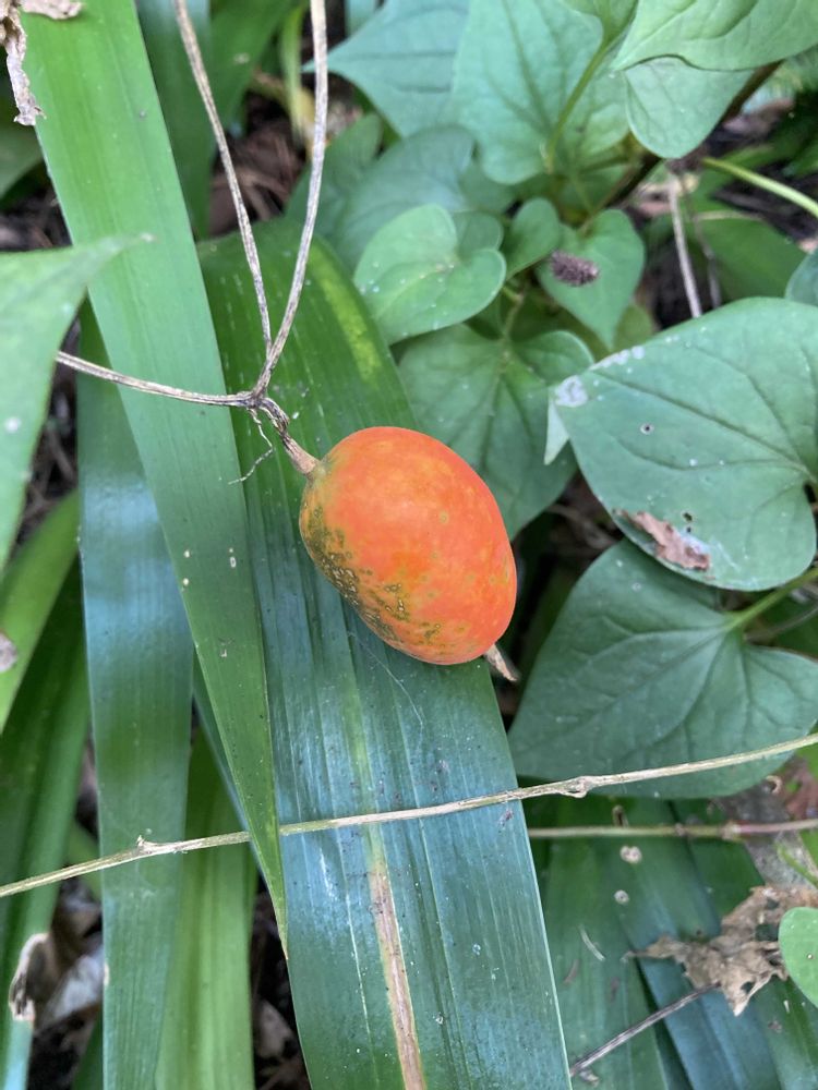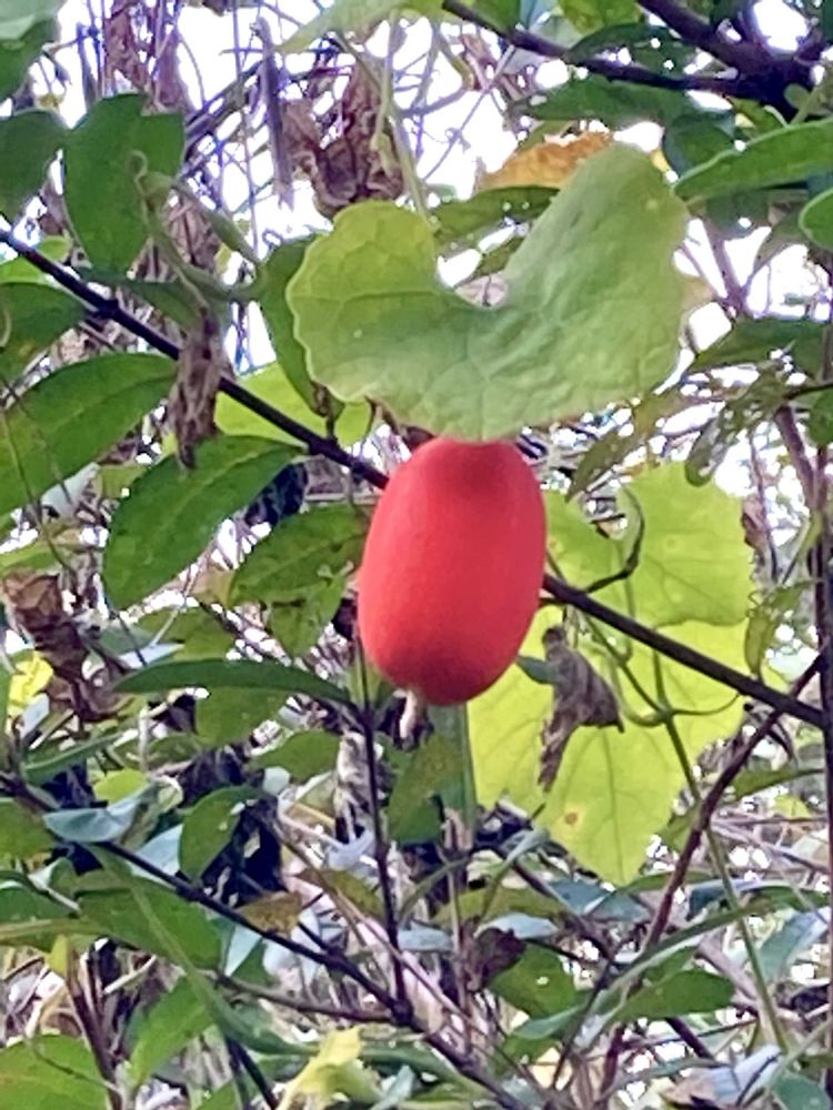 今日、公園を散歩していて偶然見つけた橙色の実。