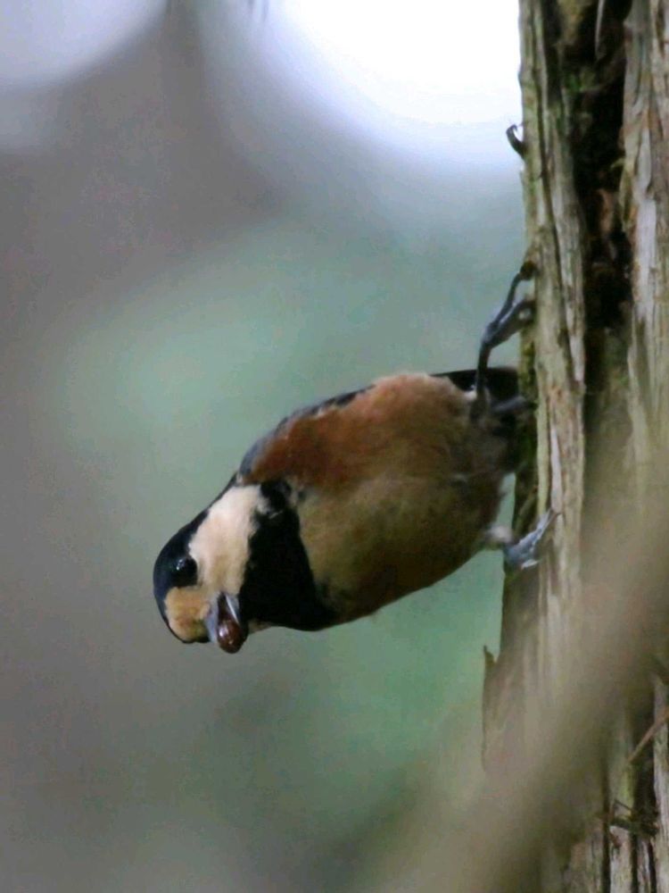 ヤマガラちゃん、早く食べないと落っことしちゃうよ〜😅