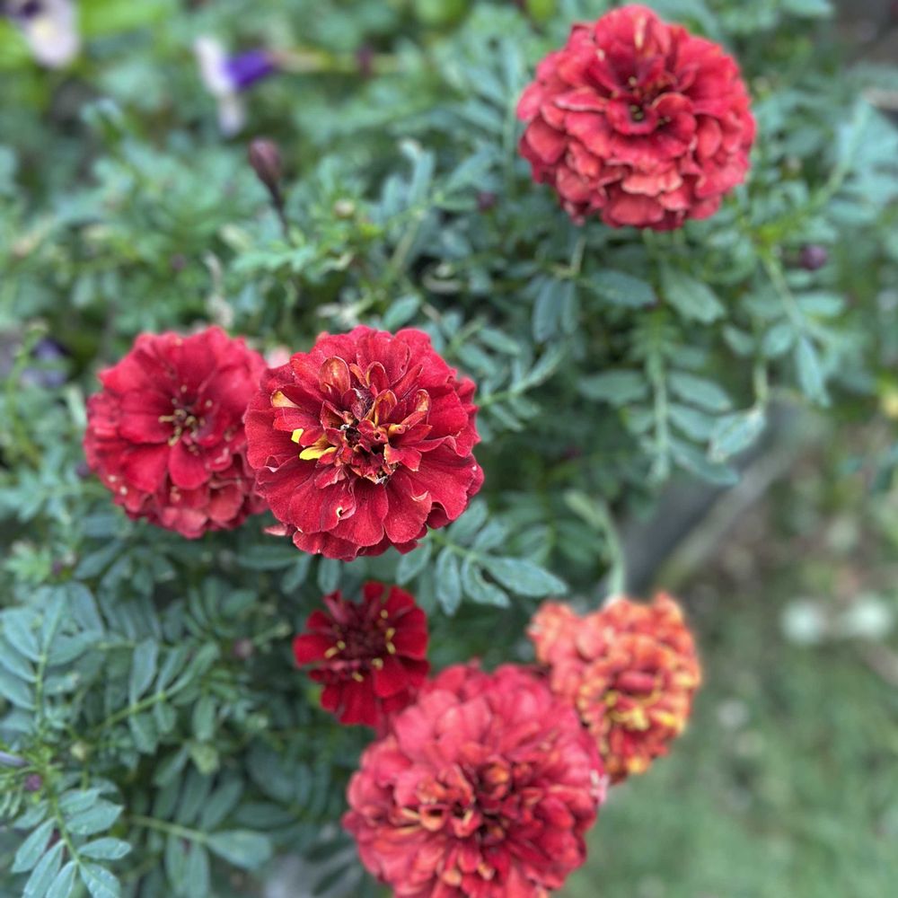 何度も登場のマリーゴールド、ますます深い色味が気に入っています。ダリアもやっと咲きました。寄せ植えにしましたが、開花前はシックを通り越して地味すぎましたが、やっと見栄えがします。