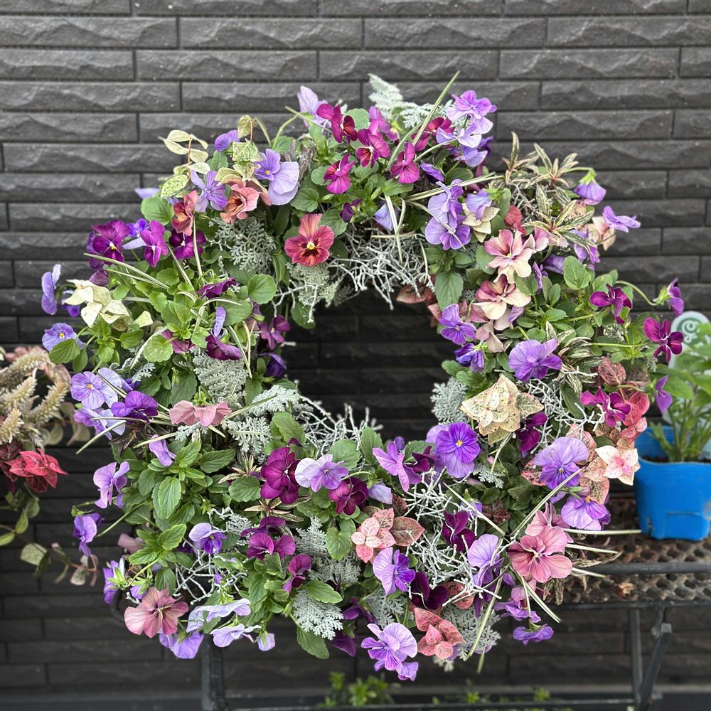 最後はギャザリングレッスンで作成したリーズです。リースは綺麗に作るのがほんと難しいです。技術の差が明らかに出ますね💦一日がかりで作りましたが、時間切れで少し消化不良な感じの出来映え涙