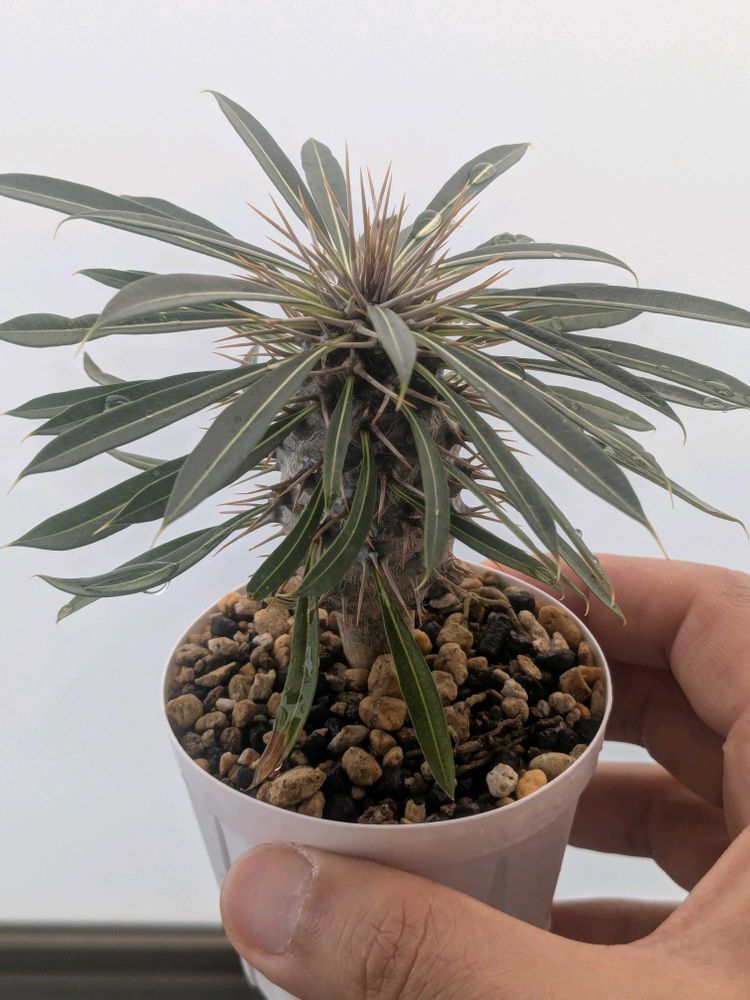③パキポディウム・ラメリーさん。この間植え替えたばかりですが、鉢をケチりすぎたか💦来春は鉢上げしなくては。
