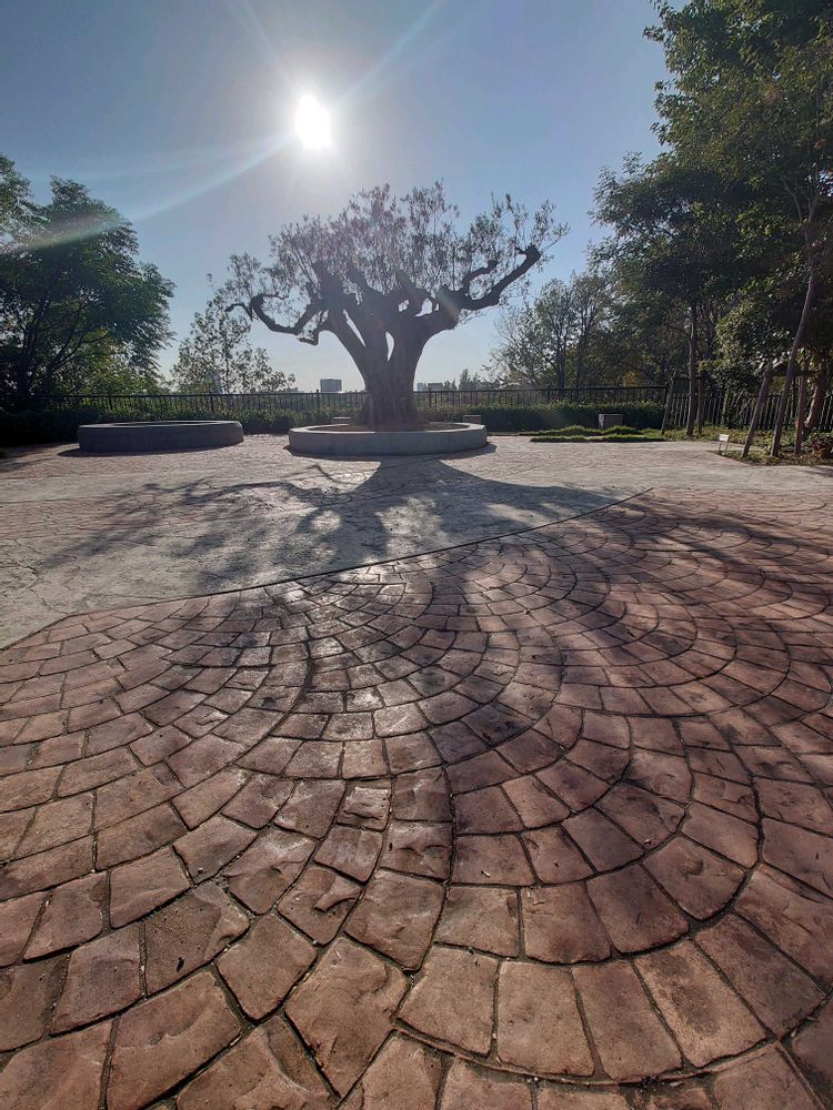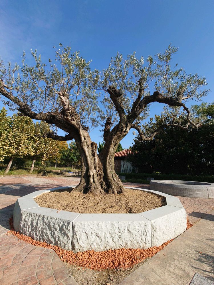 鶴見緑地公園スペイン館の隣にオシャレなオリーブの木があります🐦…大好きな木の廻りでひと休みです🦫…