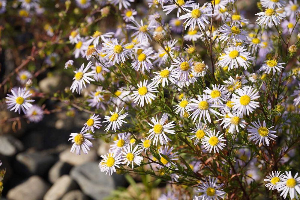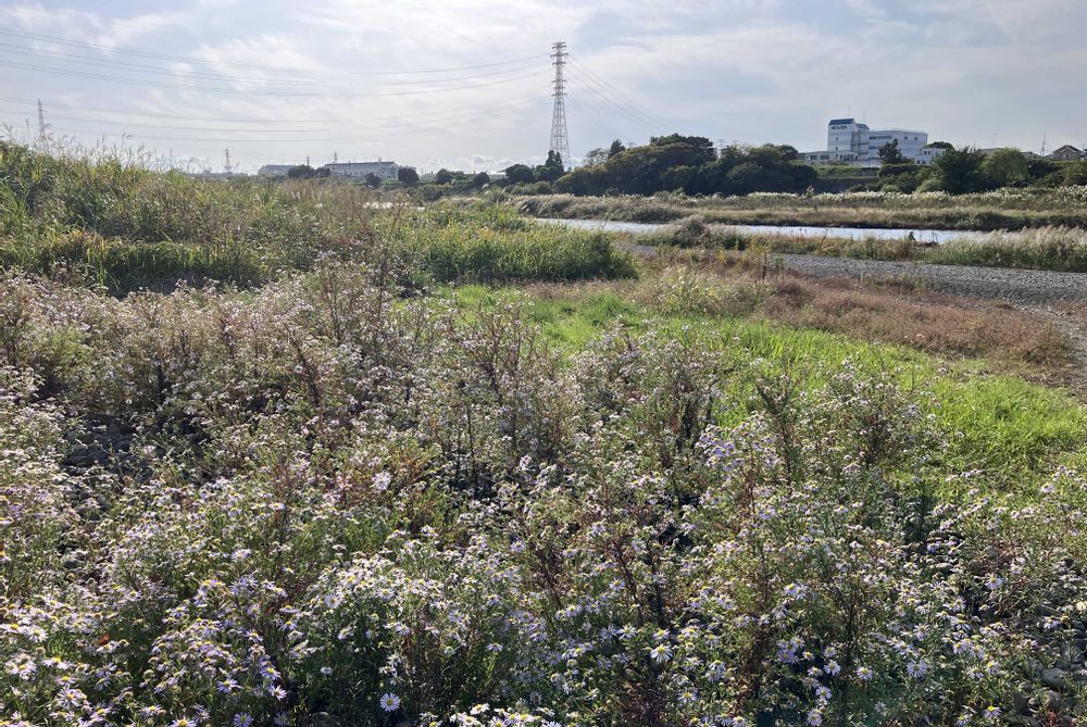 相模川の神川橋の上流の河原に、国の絶滅危惧種に指定されているカワラノギクが群生しています。