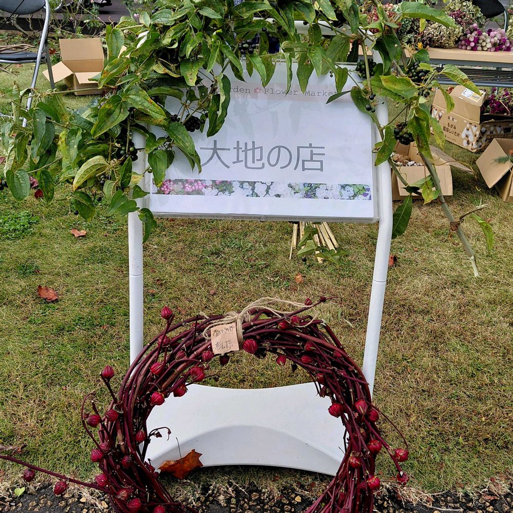 私が作ったのてはなく、このリースは花菜ガーデンの出店の看板に飾ってあったのです🌿