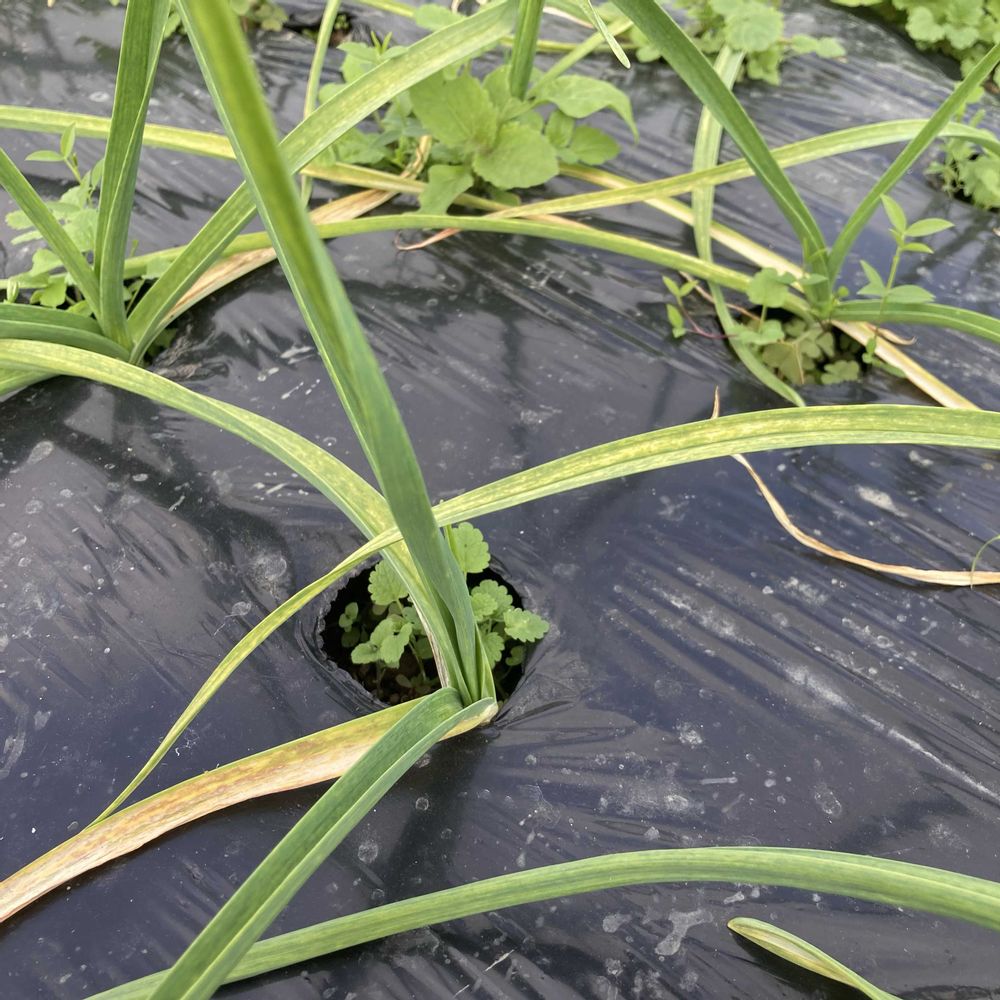 茄子、ミニ白菜、ニンニク、ラッキョウの成長具合。