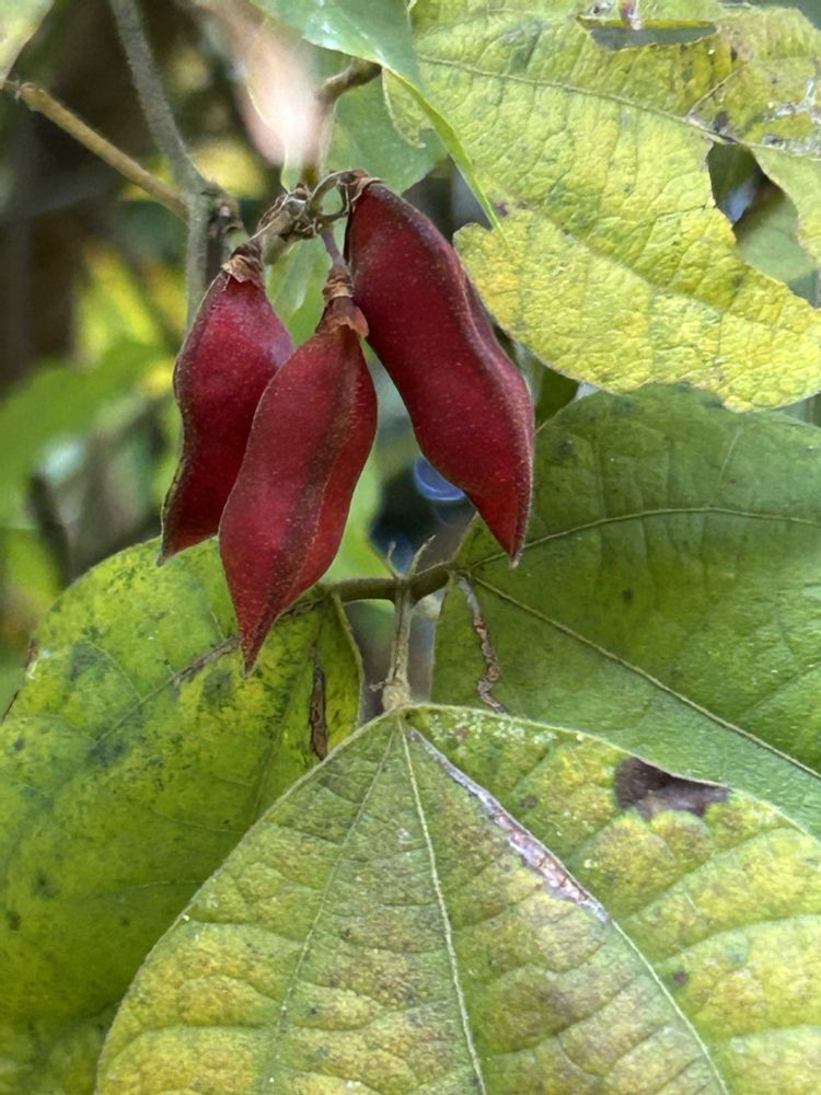 ④優しい黄色い花なのに、この鞘の色の凄み!なんとも良い色を獲得したものですよね〜!?改めて素敵な植物ですね🤩