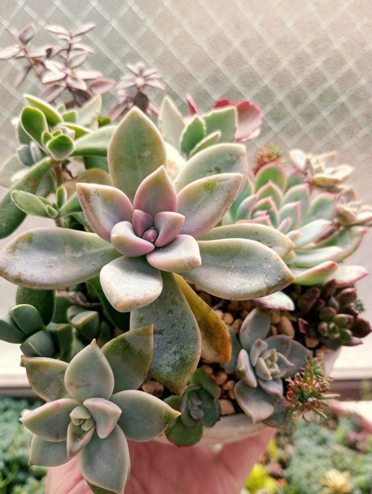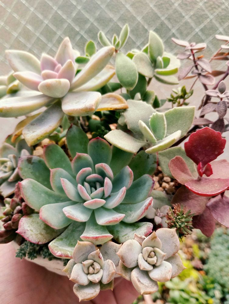 この寄せ植えは和風な寄せ植えにしたかったので、色々和っぽい多肉を詰め込んで作りました🤭