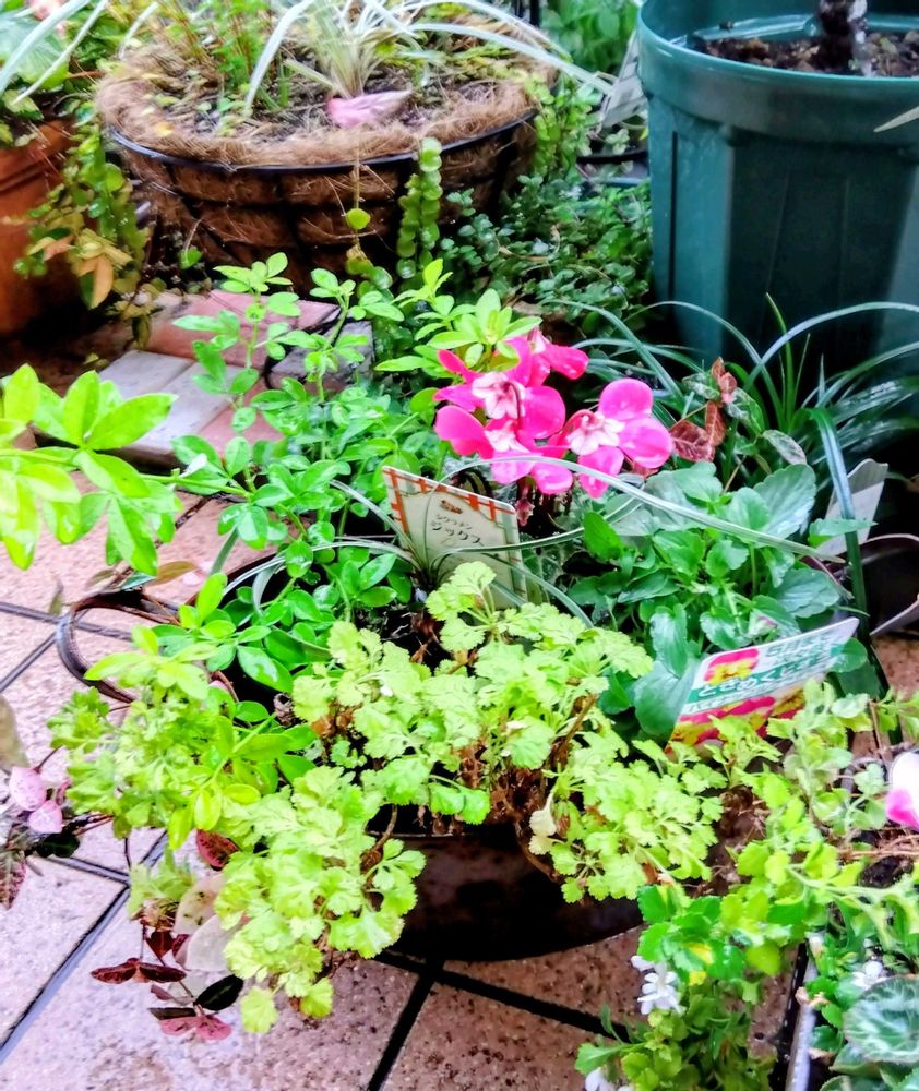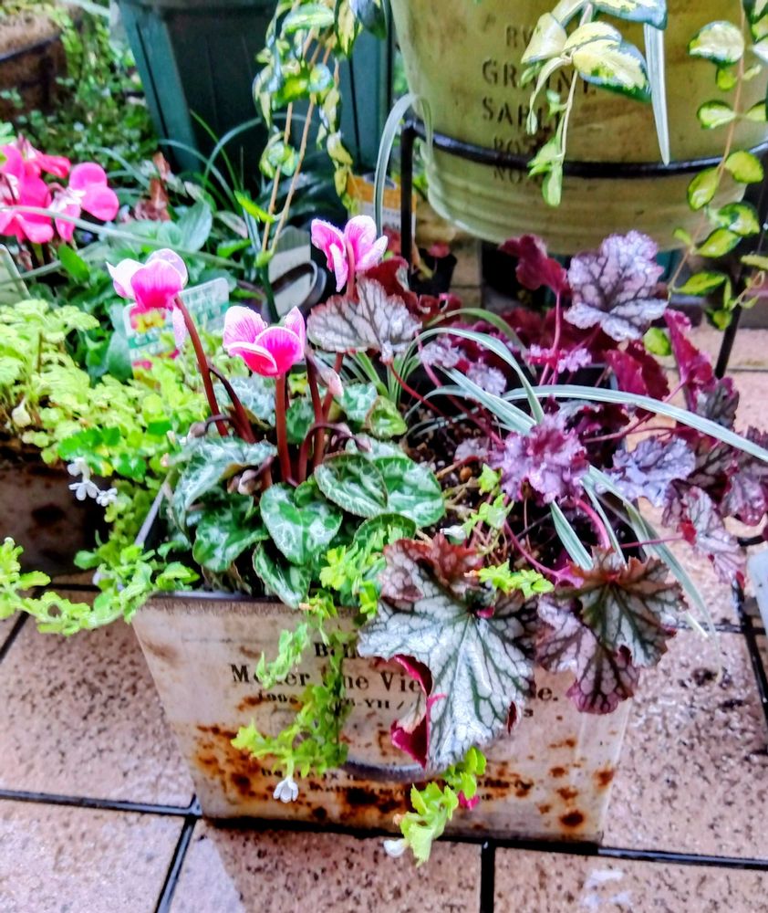 沢山寄植えしたのですが、残っていたリーフの所にシクラメンを植え込んだので、ちょっと適当になってしまいました😁