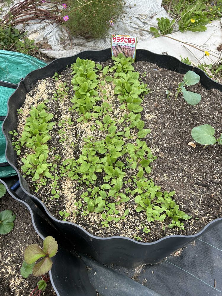 博多雑煮に欠かせない、かつお菜も蒔きました♪サラダ小松菜、小さい大根、ラディッシュ、あとなんだっけ?