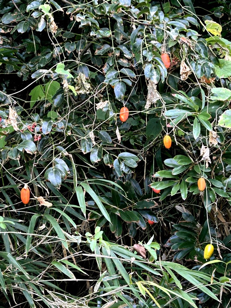 秋枯れが始まった雑木林の林縁などで、良く目立つ朱色の実をつける