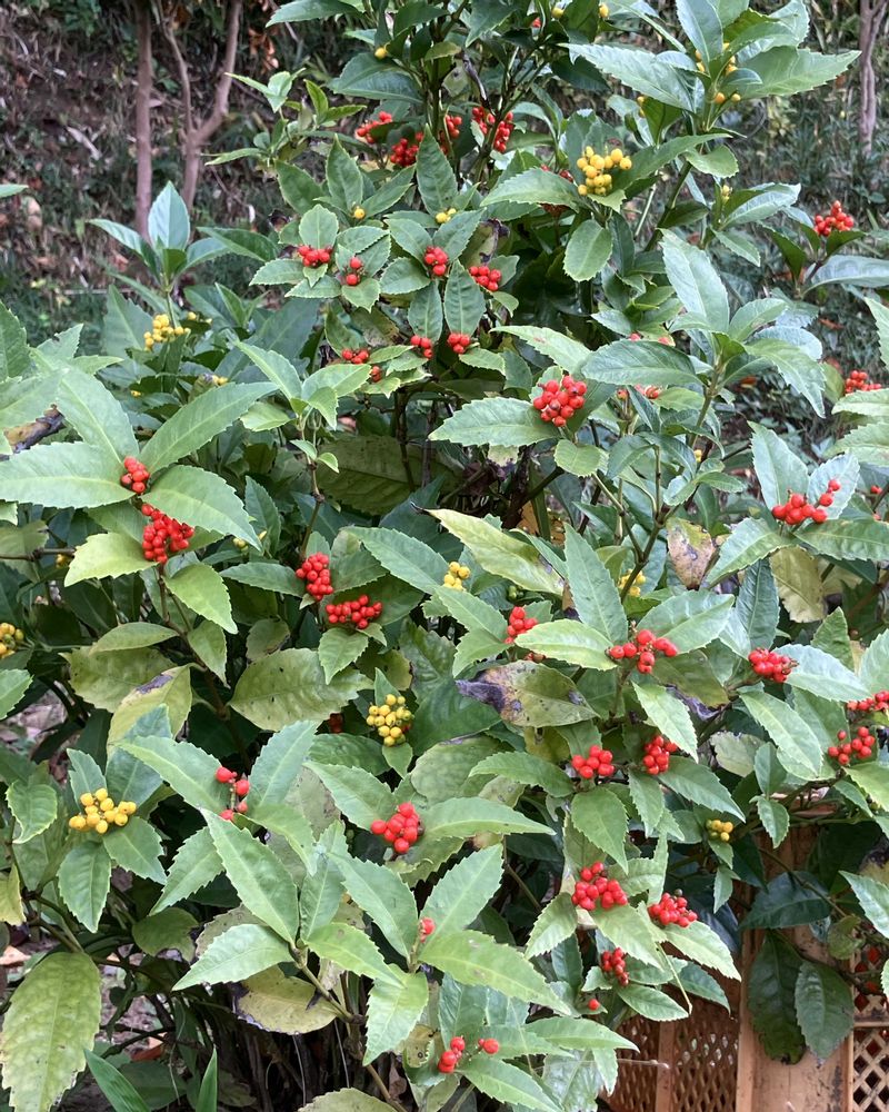 センリョウとキミノセンリョウの同じ場所も珍しいですね⸜❤️⸝💛