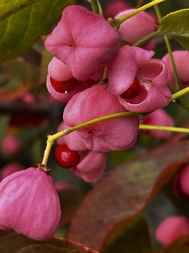 我が家の真弓は畑の横に植えてあるのですが、毎年無惨に切られて中々可愛い実を見る事が出来ません😭