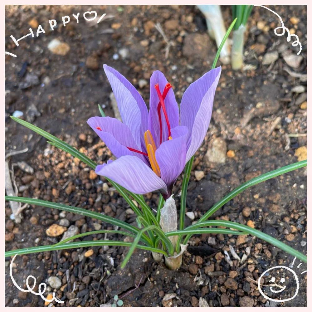 9月に植えたサフランのお花が咲きました♬小さくてかわいい〜😆💜