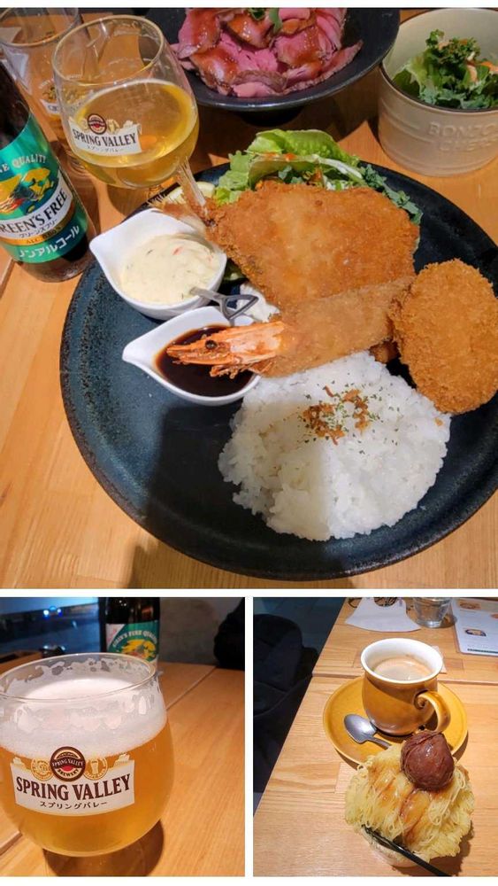 終わってから クラフトビールとエビフライ🍤定食 デザートはマロン🌰アイス