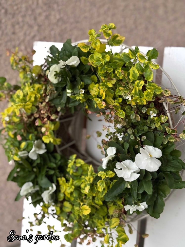 初めてのハンギングリースに挑戦してみた🤭🤗自分でもどうなるのか⁉️ちょっと楽しみやわ😆😉