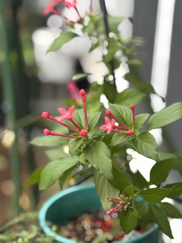 PWガーデンブバルディアファイヤーレッドの丁子の形をした花が開花してます(アカネ科カンチョウジ属)