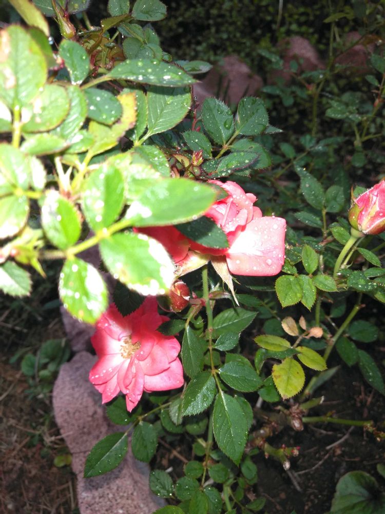 可愛い❤〜ミニバラちゃん 雨☔に濡れちゃったね〜 今日は1日中 こんな天気かな? 寒いよね~ でも 明日は晴れるって 今日は寝て曜日だ〜☺️🤗🤭😁