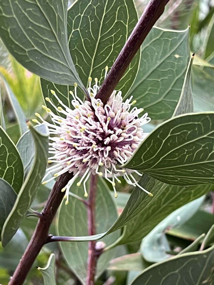 派手さはないけれど栗のイガのような特徴的な花が咲いてます。