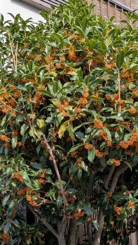 ⑤我が家の金木犀です。今朝の雨で花びらが散り始めました。