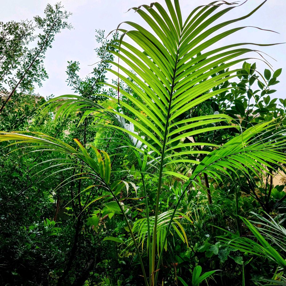 ・葉: 長さ4〜5メートルにもなる大きな単羽状複葉(鳥の羽のような形)を持ち、頂部にまとまってつきます。葉は光沢があり、風にたなびく姿が優美で、「世界でもっとも美しいヤシ」と称されることもあります。