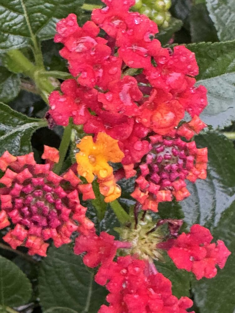 今朝も冷たい雨粒を乗せ色々な花姿を見せてくれていました❤️🧡🩷