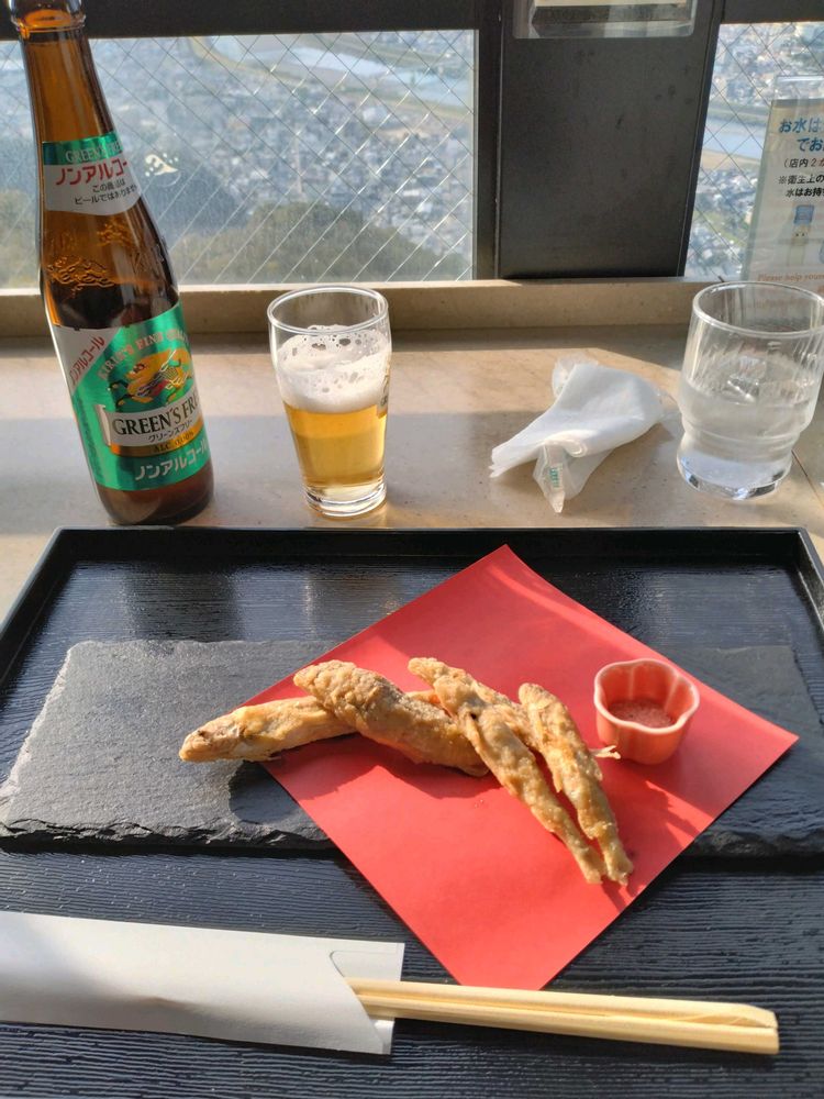 眺望レストランで若鮎の唐揚げをいただきました。美味。