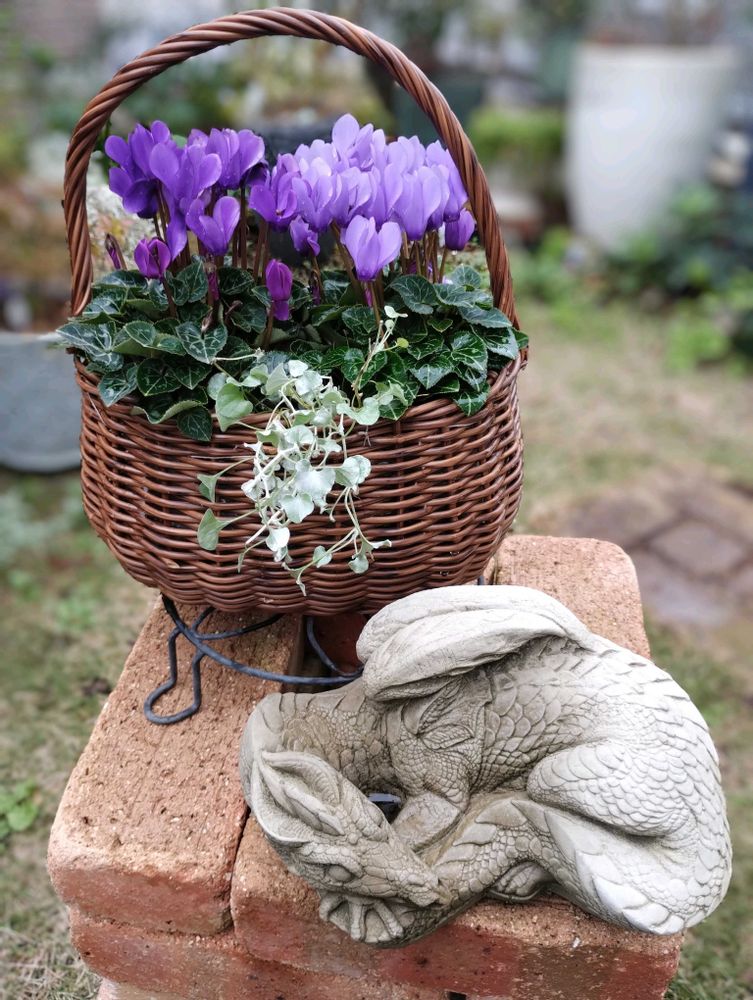 バスケットに入ったシクラメン、オシャレ🩷 ̖́-