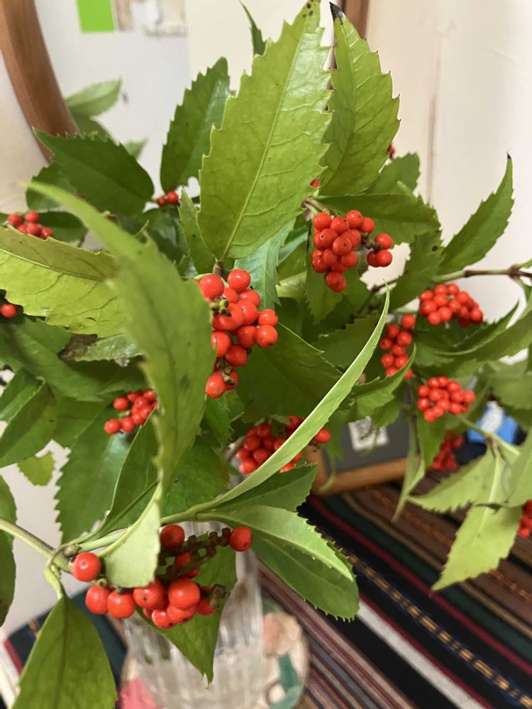 こんにちは、赤い実特集…季節を感じますね^_^①センリョウ②ホーリーなんとかさん(お名前忘れてしまった🥺)③昨日載せたのです。ナンテン 載せてないけどマンリョウももうすぐ色付きます