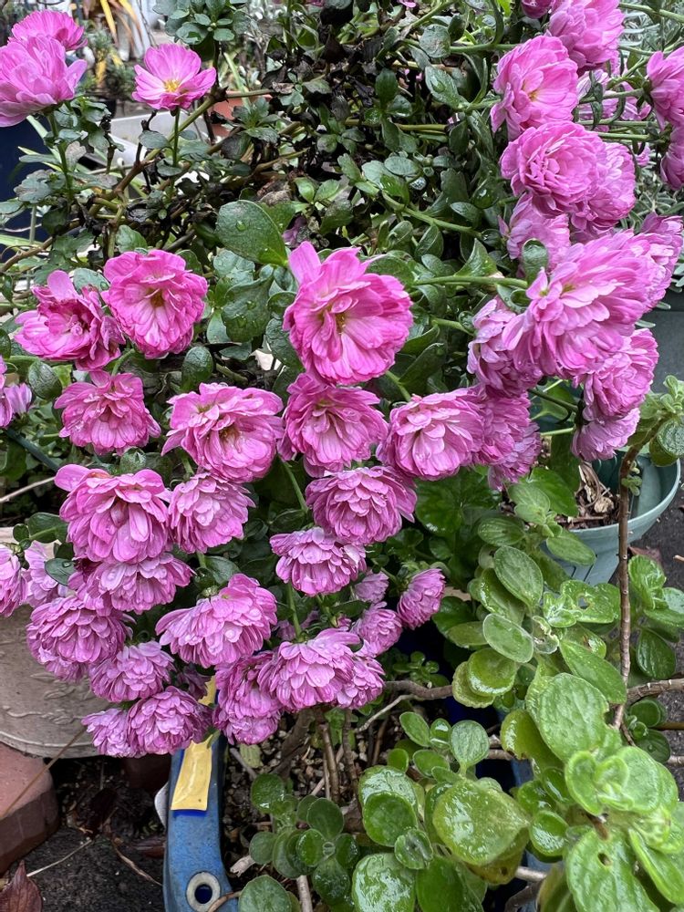 ざるをひっくり返したこんもりした形で咲くはずなんだけれど‥😅