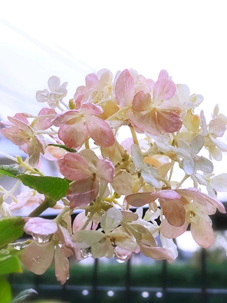 このノリウツギ、今までは緑になったらカットしてドライにしてたけど、この一枝だけ残したらピンクに染まってきました。💗