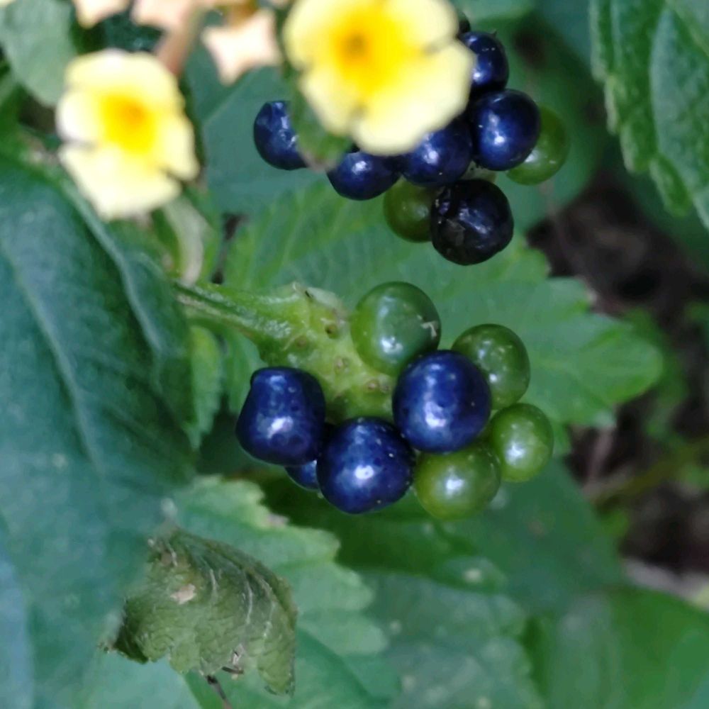 🐦️さんのこぼれ種でお庭に来たコです〜✨実もなりました〜🟢⚫️🟢
